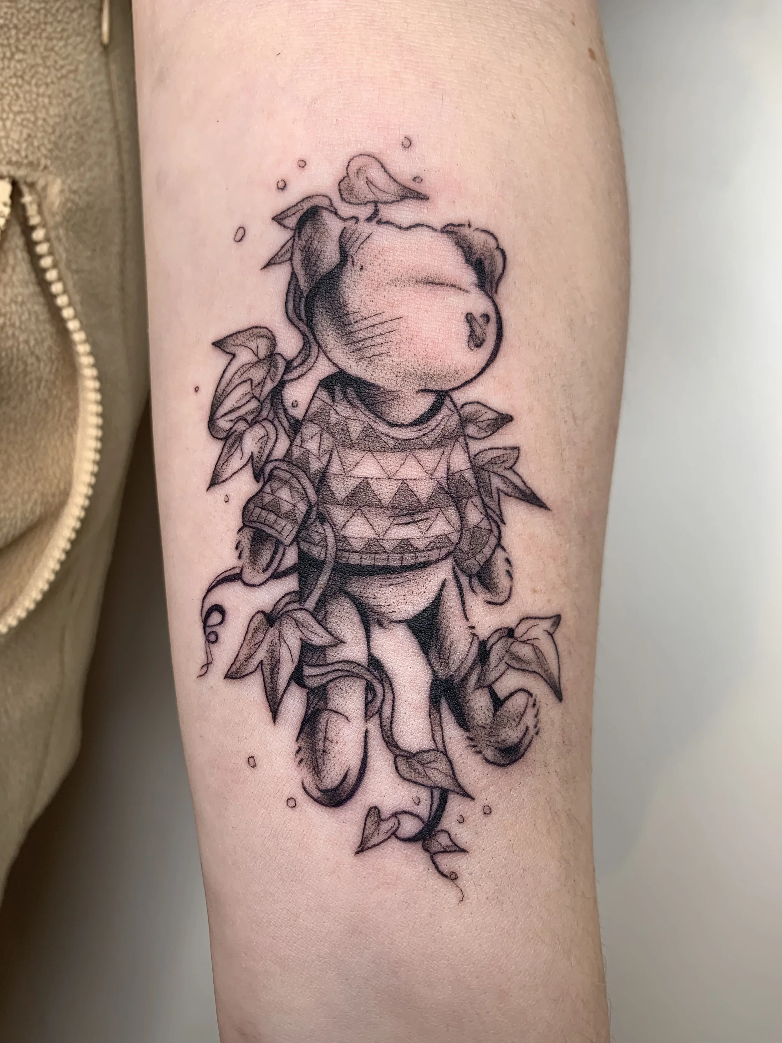 The tattoo after it’s been completed! It won’t be an exact copy of the sketch, but represents the design.